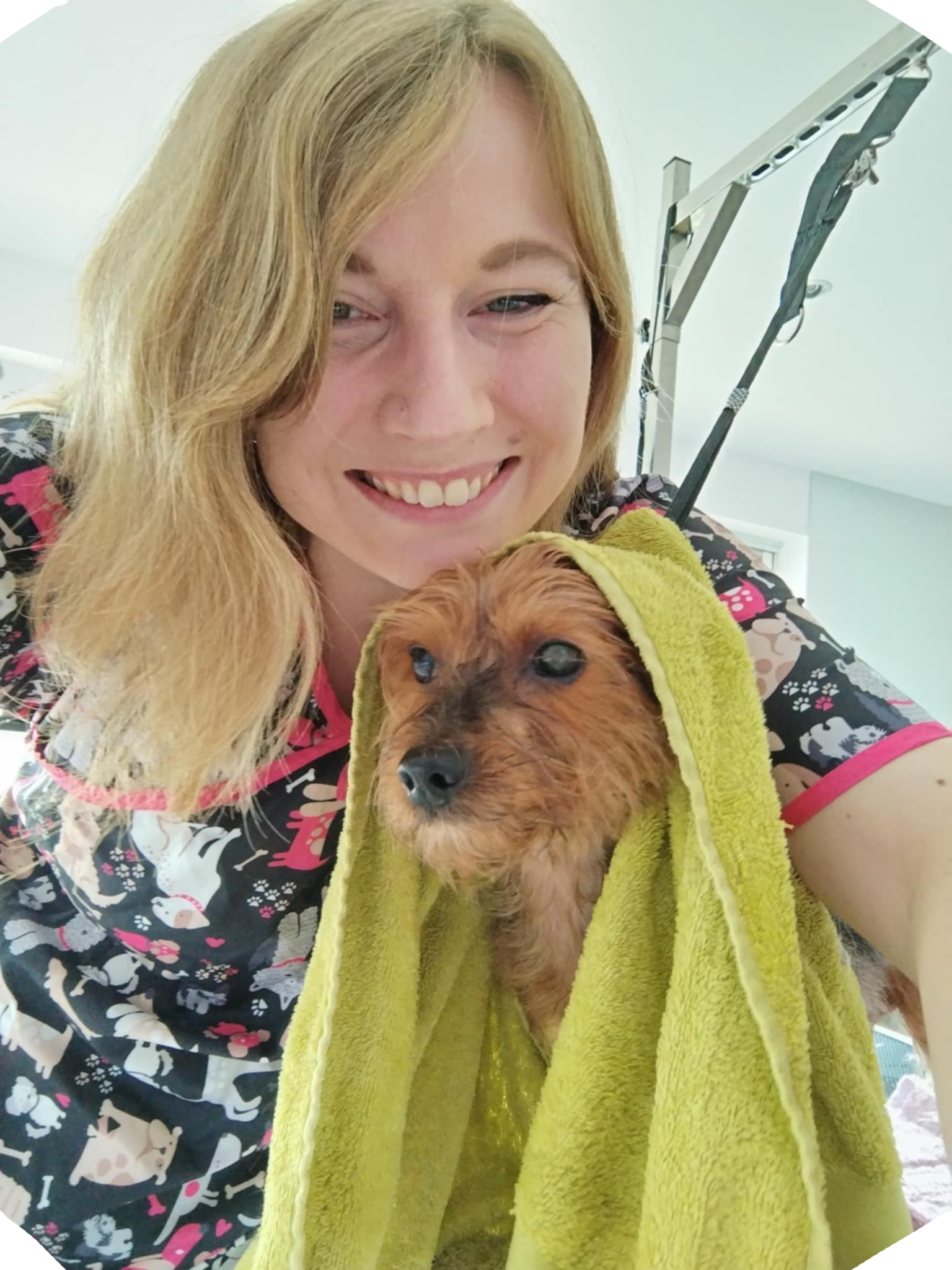 Nous avons emmené notre chienne pour la première fois au salon, Camille a été très douce et a su s adapter à notre chienne craintive, qui pour la première fois n a pas eu besoin de muselière pour se faire toiletter. Nous l avons récupéré toute propre et toute douce. Merci pour elle !! Je recommande sans hésiter.